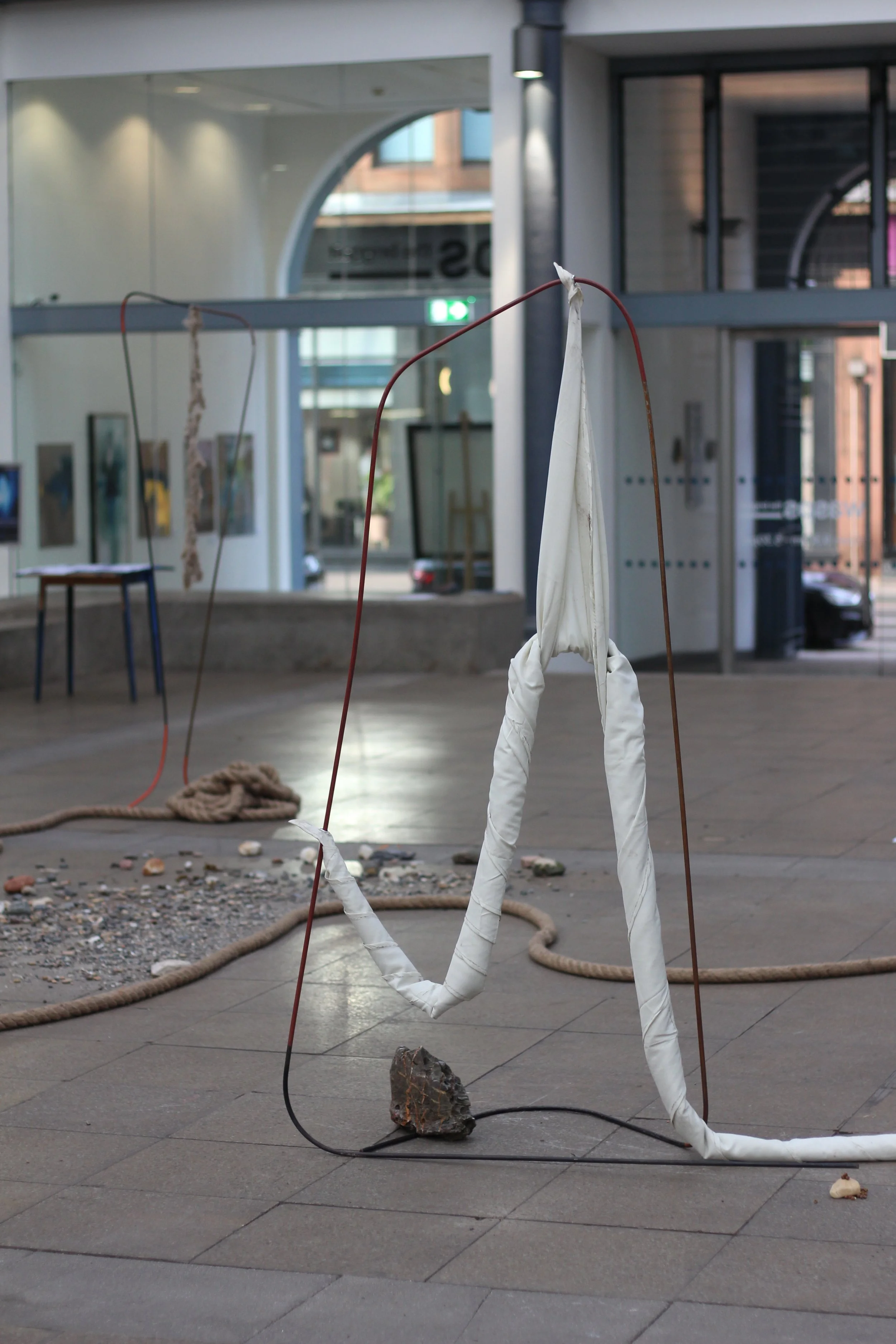 The work explores my ongoing fascination with steel, limestone, and flax, intertwined with newer concepts of ancestral muscle memory. Earlier this summer, I joined a nine-person crew to cross the Inner Hebrides aboard a Sigma 42 sailboat. This journey was a personal endeavour to connect with my master mariner ancestors who once owned the renowned ‘smack’ (boat), The Lady Margaret, on the island of Lismore.